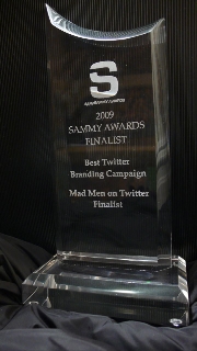 It's really an amazing facet of the Internet. AMC has nothing to do with what is one of the more remarkable outreach campaigns online. Not that everyone involved agrees that it's a campaign at all, but we've seen people get into the TV show because they got into the banter from the Twitter characters, there's been mainstream press about the twittering and now, the Mad Men Twitterers have done another first -- the fans got an award for a campaign.