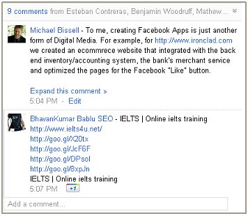 No problem I'll just… Hmmm… wait a second… I can +1 his comment, but there's no -1… I can add another comment… I can… Damn it, there really isn't anything I can do. And then he hit another posting, and I had the opportunity to see his links IELTS training links again, whatever the hell IELTS training is -- I'm certainly not going to click on the link to find out.