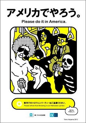 My niece, Kyra, or Little Gaijin, lives in Tokyo. She pointed out this brand parody of the “Manners Signs' they have for the Japanese trains that tell you you shouldn't pass out drunk on the subway, or treat the subway like your living room.