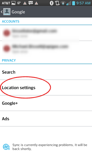 Step One Go to All Settings->General and select Accounts and Sync (I know, there's that Location button right there, but if this was easy people wouldn't be asking…)