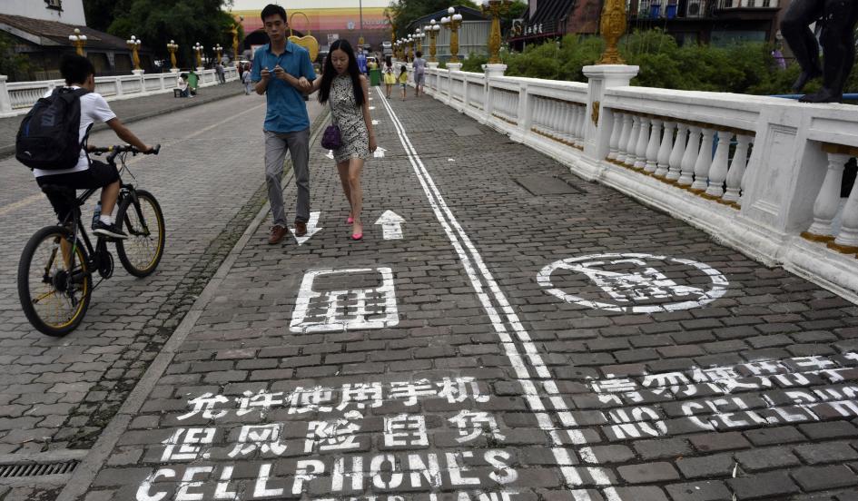 It's gotten so bad that the Chinese city of Chongqing has created special pedestrian lanes for people who want to walk and text. It reminds me of the 'ladies only' train cars they put on in Tokyo because they had to separate drunk business men from polite society. That's right. Texting while walking is like being a gropey, drunk Japanese businessman.