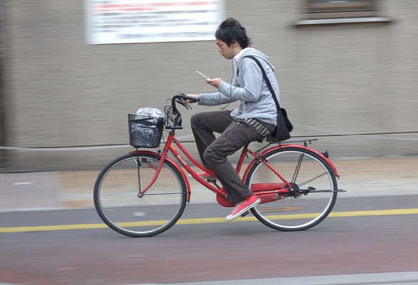 But texting while riding? Looking down, reading small print and then pecking out small characters on a tiny screen? I've seen this too many times to think that it's just an occasional Cirque du Soleil acrobat practicing for the next big act -- the eye-hand coordination required to even fish the phone out of your pocket while on your bike is amazing enough, the rest it just… astounding.